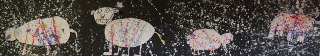 Sie sehen oben auf der Seite Beispiele aus unserem Kunstunterricht.
