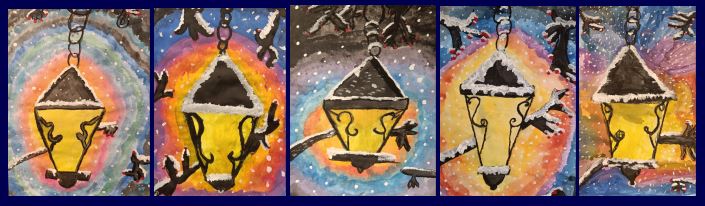Sie sehen oben auf der Seite Beispiele aus unserem Kunstunterricht.