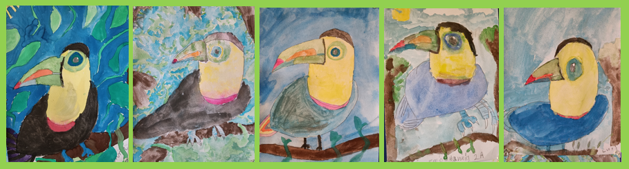 Sie sehen oben auf der Seite Beispiele aus unserem Kunstunterricht.